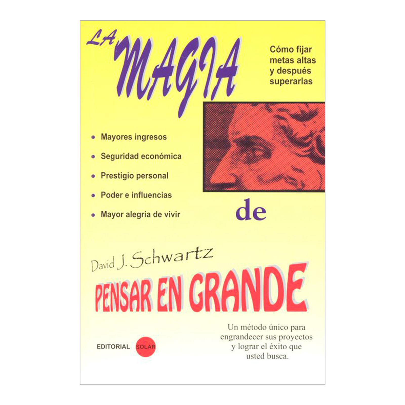 La magia de pensar en grande Pasta blanda - Print, 1 enero 2012 . por David J. Schwartz (Autor) 4.7 4.7 de 5. piensa en metas grandes sus posibilidades de éxito serán mayores. En este libro el autor le ayudará a descubrir el poder de su pensamiento y como alcanzar nuevos niveles de éxito personal, incluso en condiciones desfavorables.