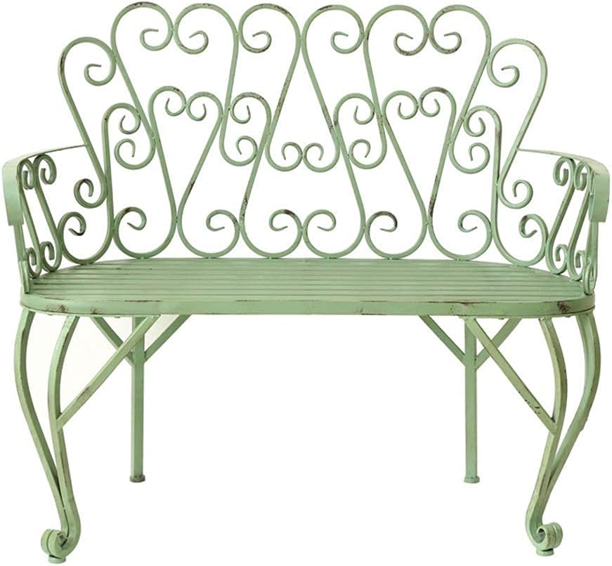 Banco de jardín de metal con acabado rosa viejo, modelo conocido como Peacock Wheel, 125cm