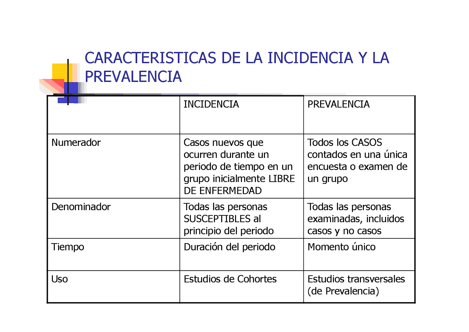 La incidencia y la prevalencia son las medidas de frecuencia más significativas y pueden obtenerse cuando se estudia la morbilidad y mortalidad de las enfermedades; en la epidemiología descriptiva son fundamentales e implican estudiar cómo se distribuye la enfermedad en la población, en particular, la incidencia según la persona, lugar y.