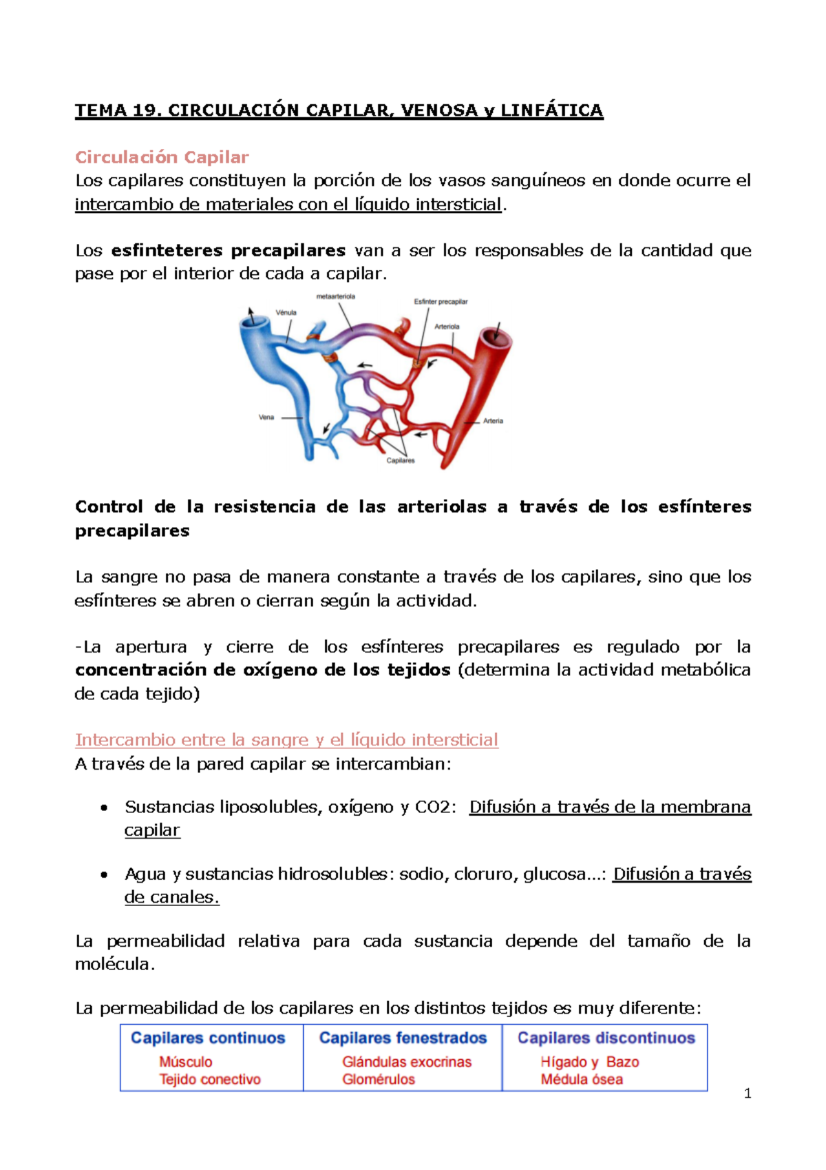 Tema 19. Circulación capilar venosa y linfática TEMA 19. CIRCULACIÓN CAPILAR, VENOSA y