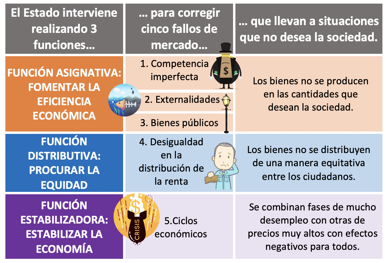 3 minutos de lectura. El estado interviene en la economía, básicamente, porque el mercado no es capaz, por sí solo, de sostener el óptimo funcionamiento económico, ni de resolver los problemas causados por el mismo mercado. Keat y Young (p.647) plantean cinco funciones primordiales que el gobierno puede llevar a cabo en una economía de.