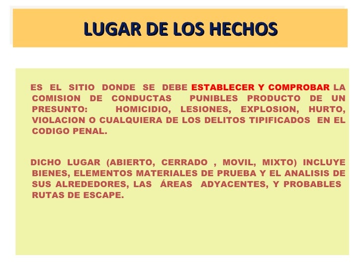 CRIMINALISTICA: LUGAR DEL HECHO AUTOR: DRA. SPINELLI, ESTRELLA MARIELA MN 110154 DNI 26800215 TUTOR: DR PRESUMIDO, MARCELO MN 113.115. en relación a los hechos. En función de esto, la pericia es el medio probatorio por el cual se intenta obtener, para el proceso, un dictamen fundado en especiales conocimientos científicos,.