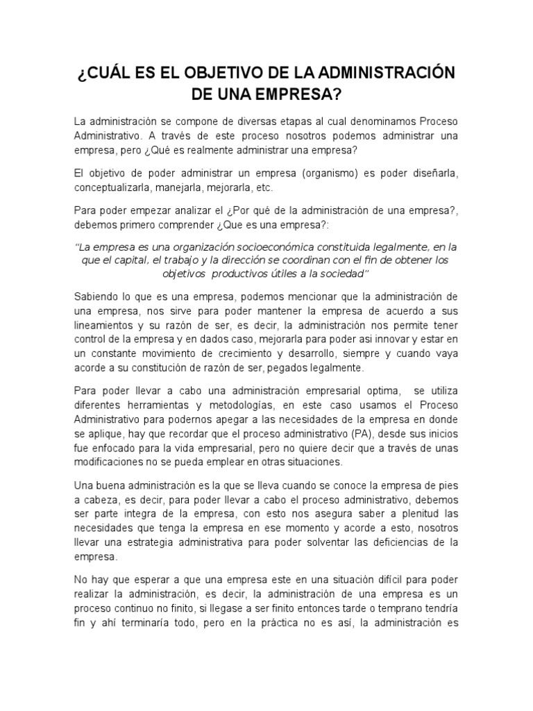 Cual Es El Objetivo de La Administracion de Una Empresa PDF Business Economias
