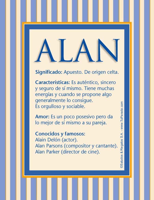 Alan, nombre, significado y origen de nombres, tarjetas de Nombres Varón Imágenes