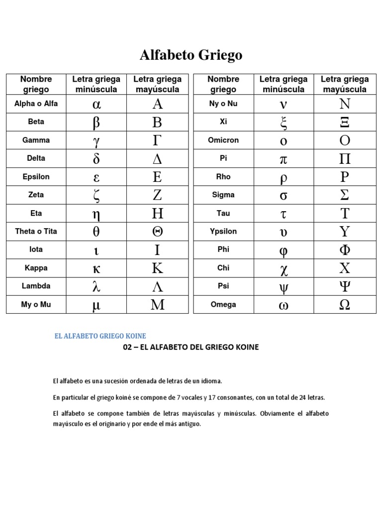 Alfabeto Griego Letras Y Nombres Mayusculas Y Minusculas Descargar Pdf