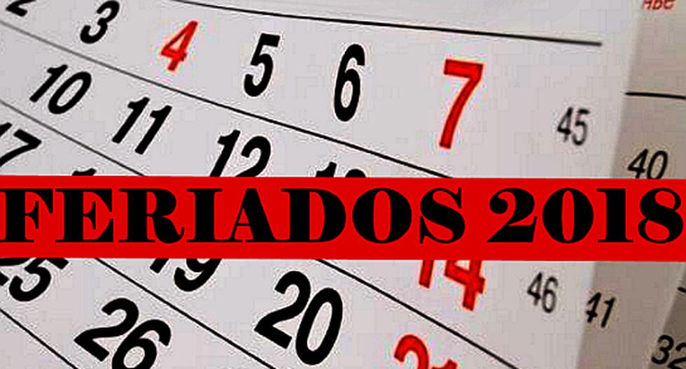 Según el calendario oficial, el año 2018 tendrá varios días feriados no laborables en los que los peruanos podrán pasear o descansar en casa.. Entre los feriados largos que más aprovecha la gente para hacer viajes cortos están Semana Santa y Fiestas Patrias.. Además, a los feriados habituales del año, en 2018 se suma el martes 2 de enero.Esta fecha fue declarada por el Gobierno como.