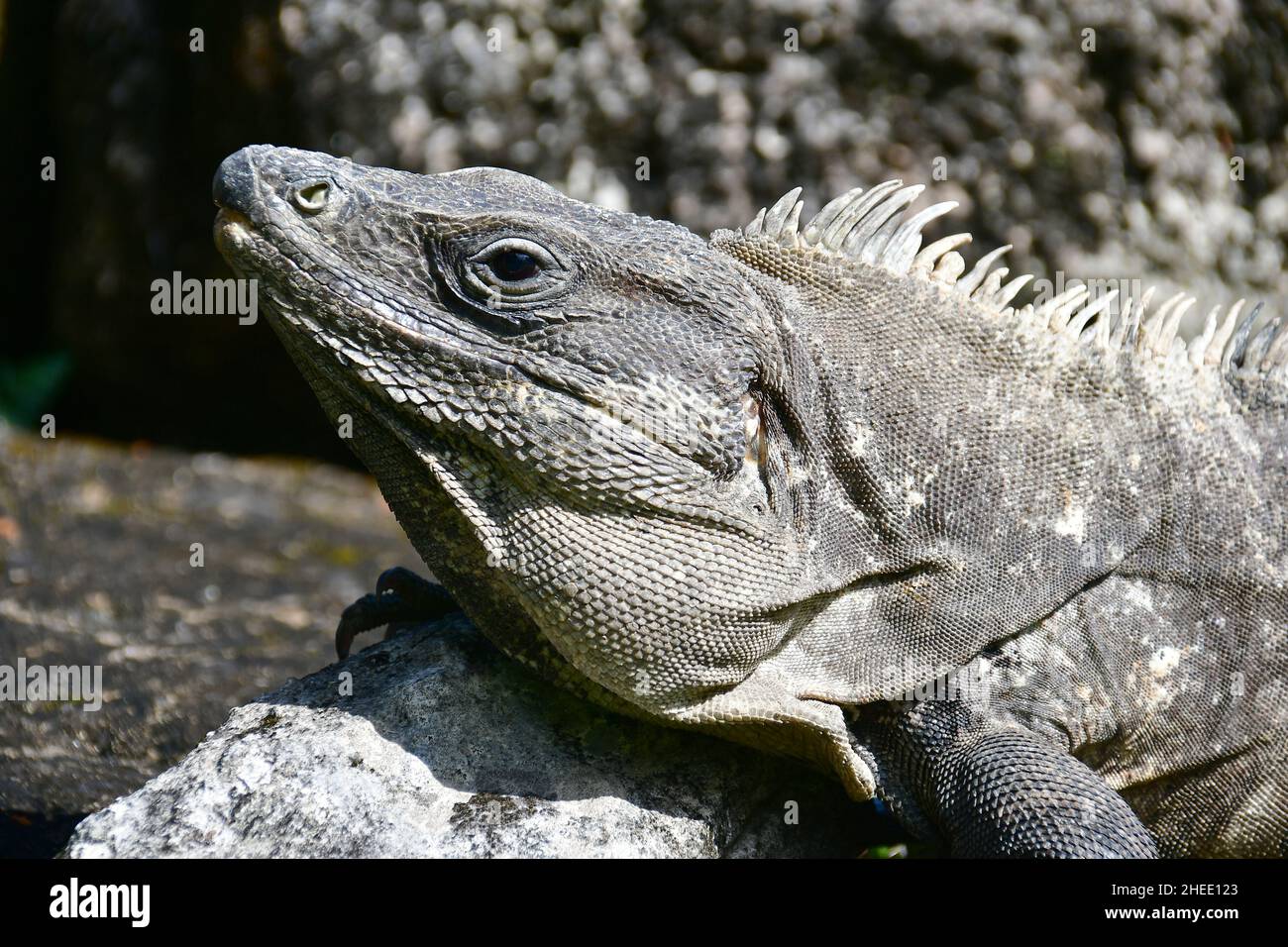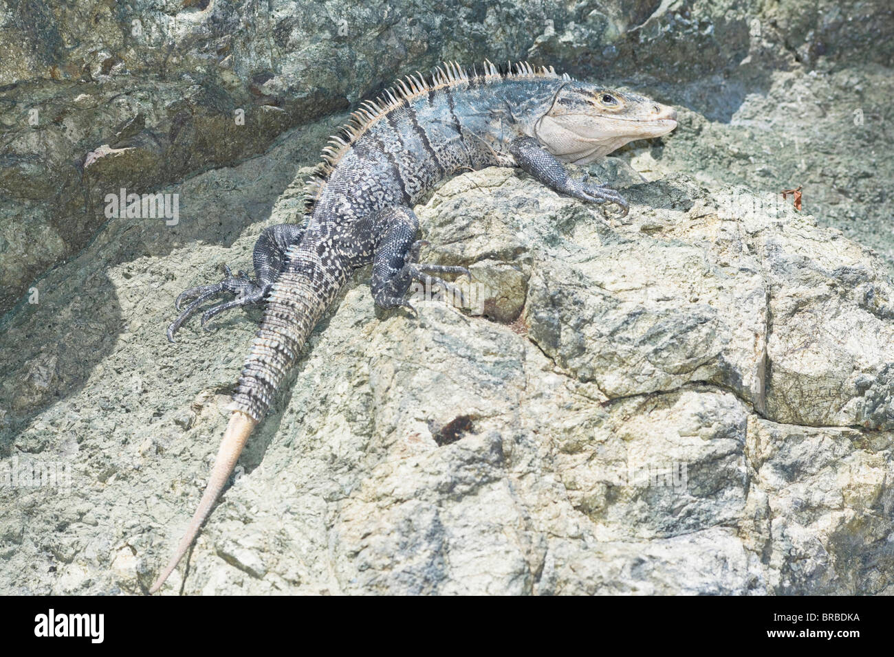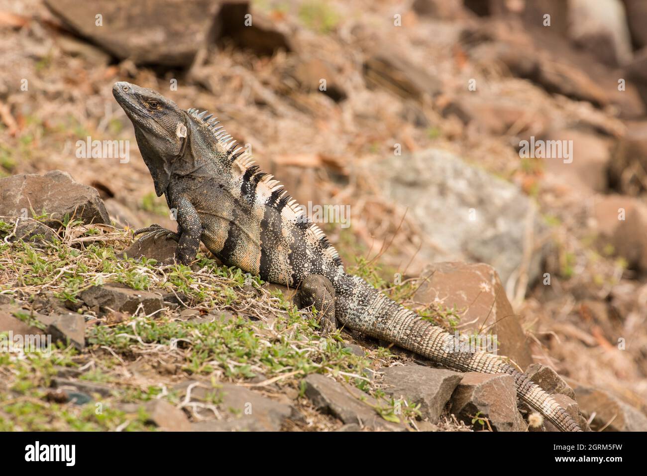 Esta gran iguana de cola espinosa o iguana negra, Ctenosaura similis, se encuentra en las rocas