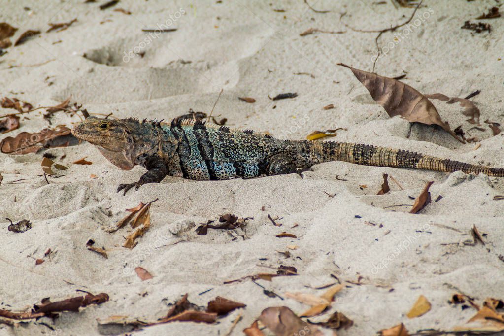 Vídeo Premium Iguana negra de cola espinosa en una playa de costa rica