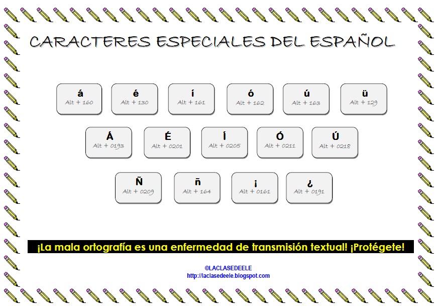 LACLASEDEELE CARACTERES ESPECIALES DEL ESPAÑOL