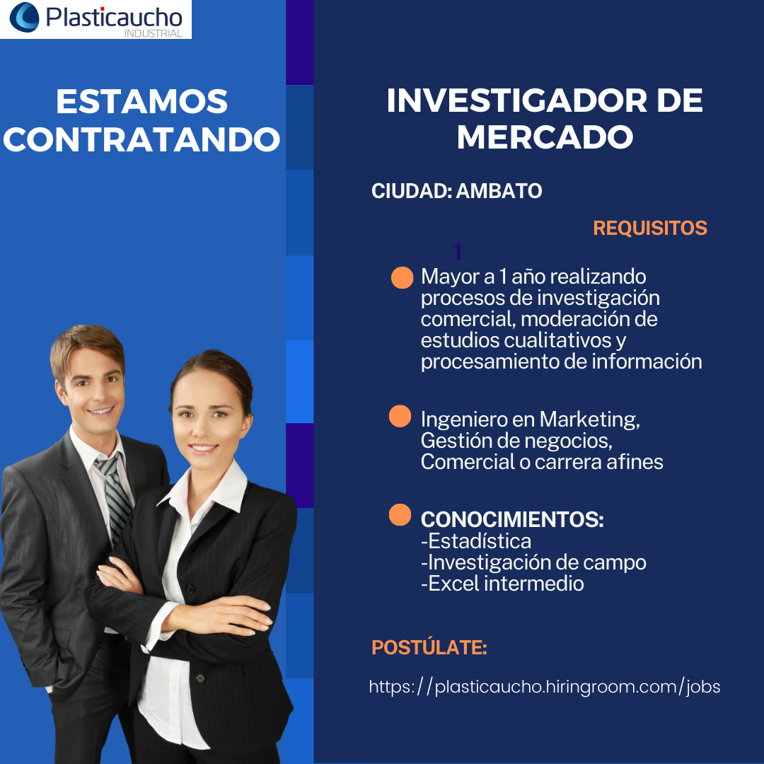 Nuevas oportunidades de empleo INVESTIGADOR DE MERCADO en PLASTICAUCHO INDUSTRIAL