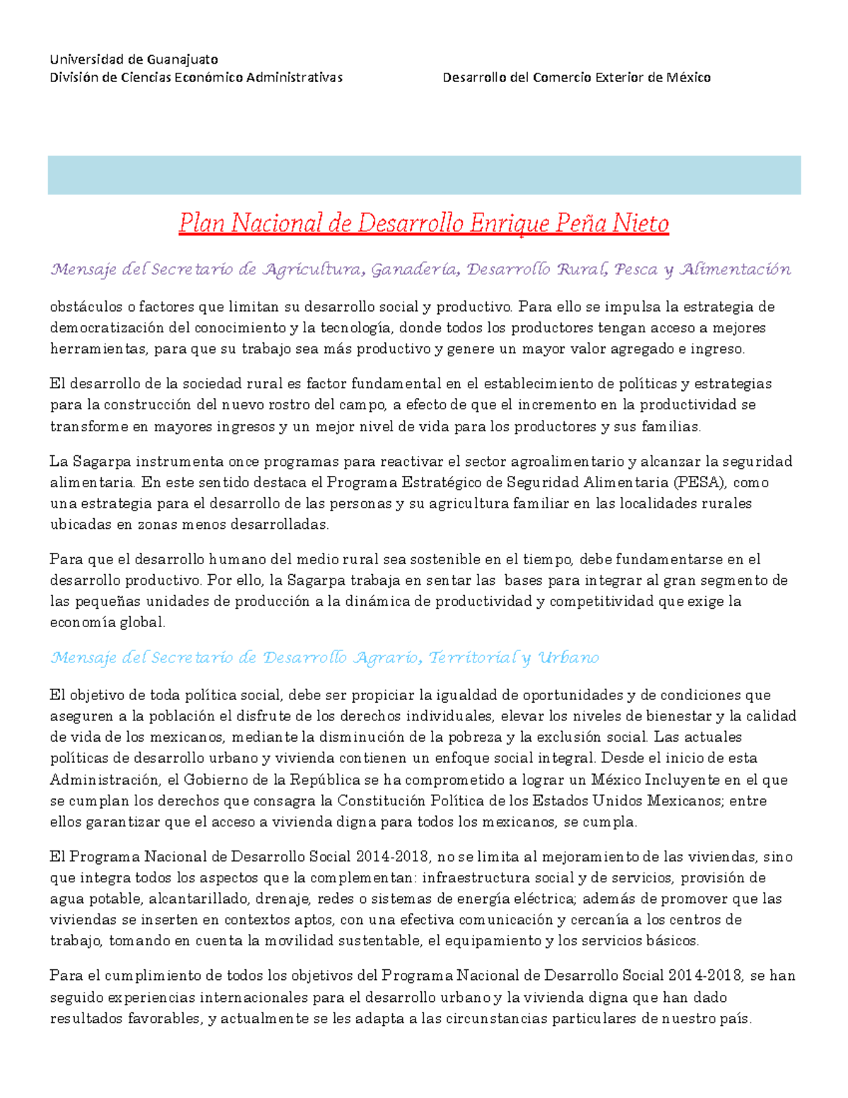 PLan Nacional de Desarrollo de Enrique Peña Nieto División de Ciencias Económico