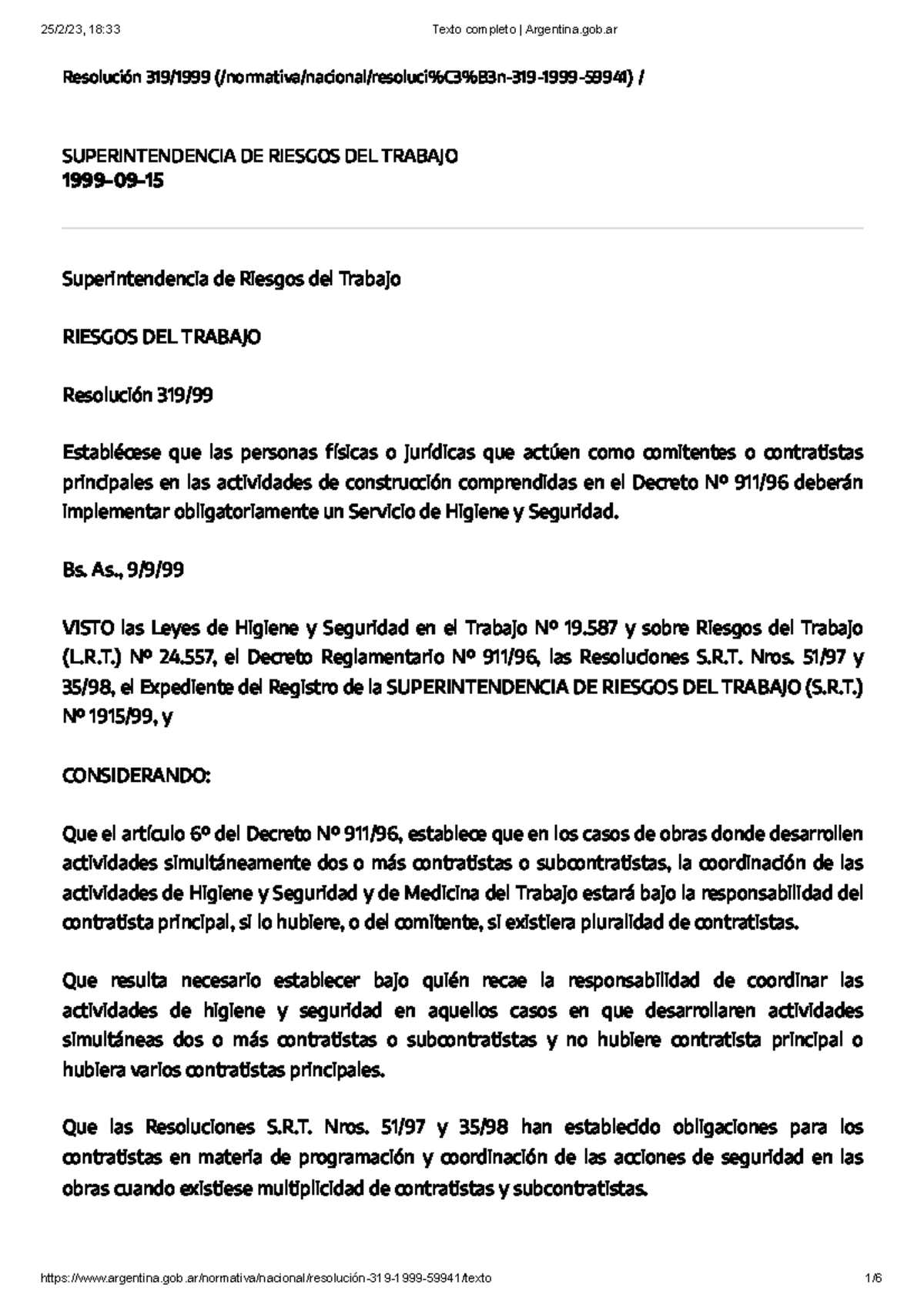 Texto completo Argentina Resolución 319/1999 ( /normativa/nacional/resoluciC Studocu