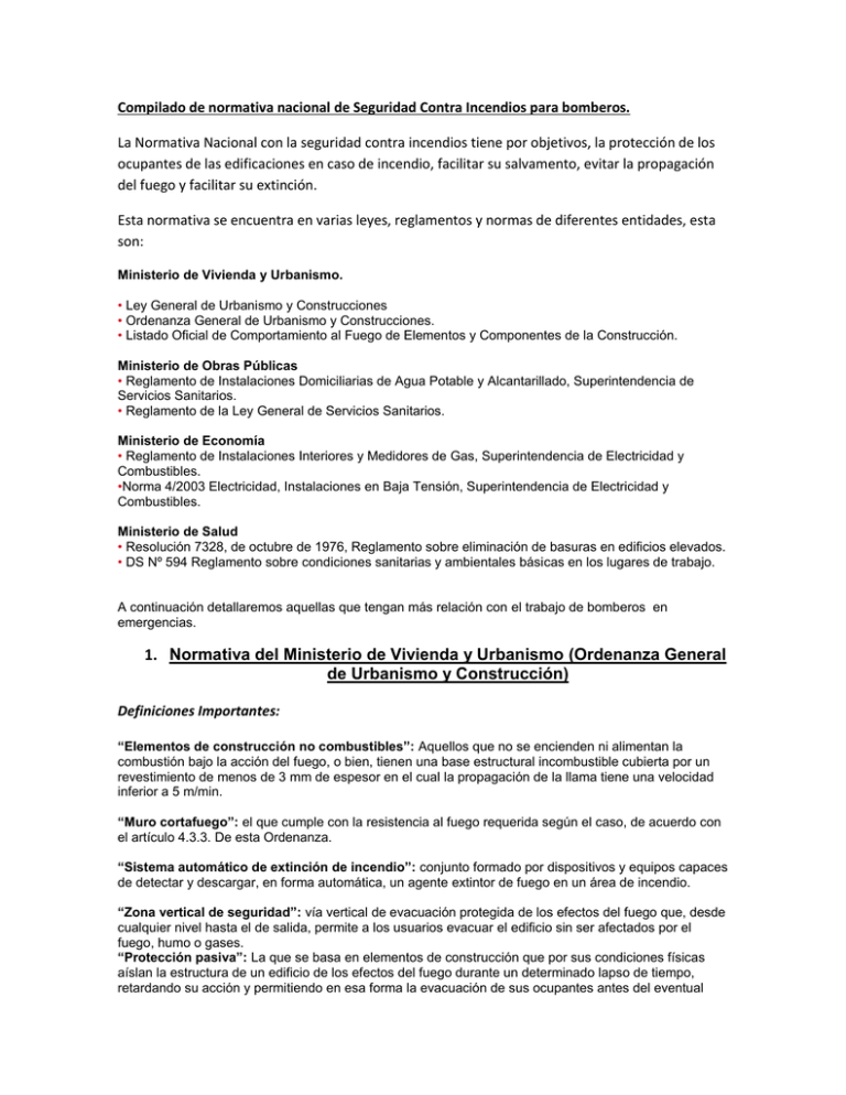 Normativa Nacional de Seguridad Contra Incendios para bomberos