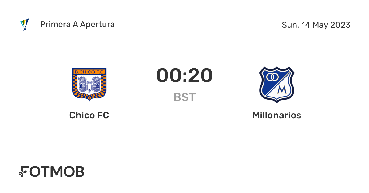 Chico FC vs Millonarios live score, predicted lineups and H2H stats.