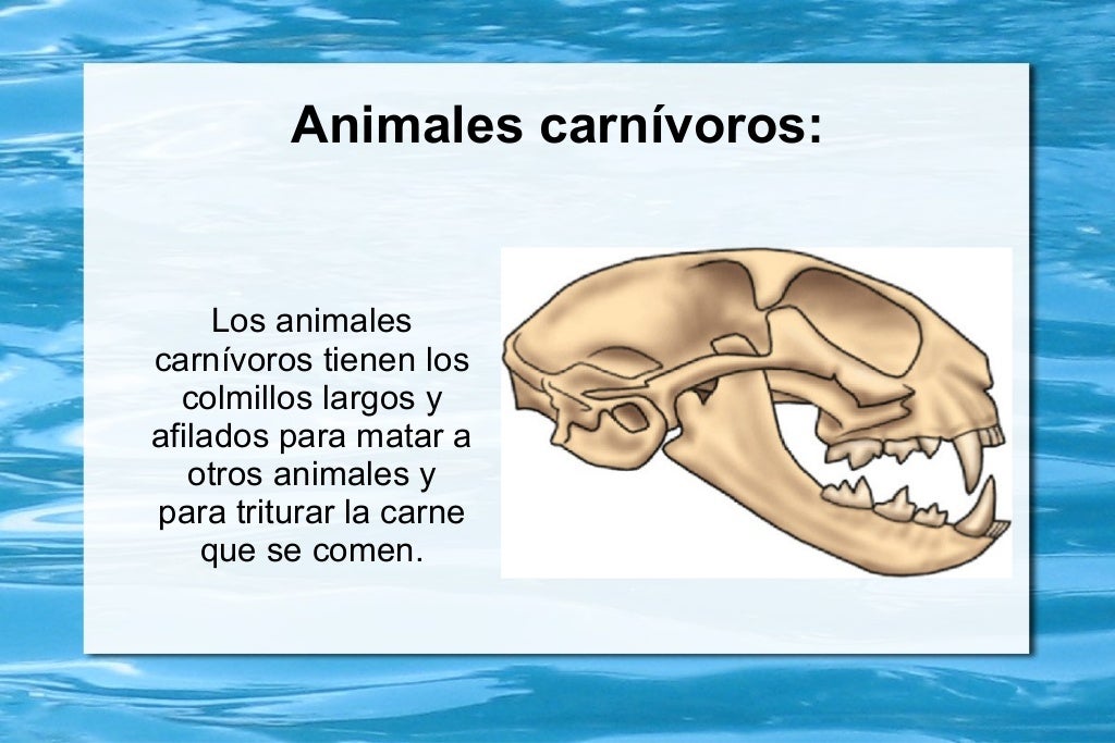 31 de agosto de 2016. A diferencia de otros animales, una de las características propias de los mamíferos es que tienen diferentes tipos de dientes en su mandíbula: Los incisivos son dientes pequeños y planos y su función es cortar la comida en trozos más pequeños gracias a su borde cortante. Los caninos son dientes puntiagudos que en el.